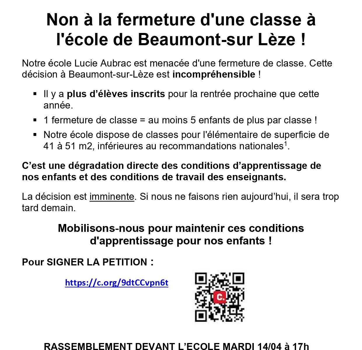 Vous habitez à Beaumont sur Lèze et votre enfant doit intégrer l’école Lucie Aubrac. Merci de procéder à son inscription.