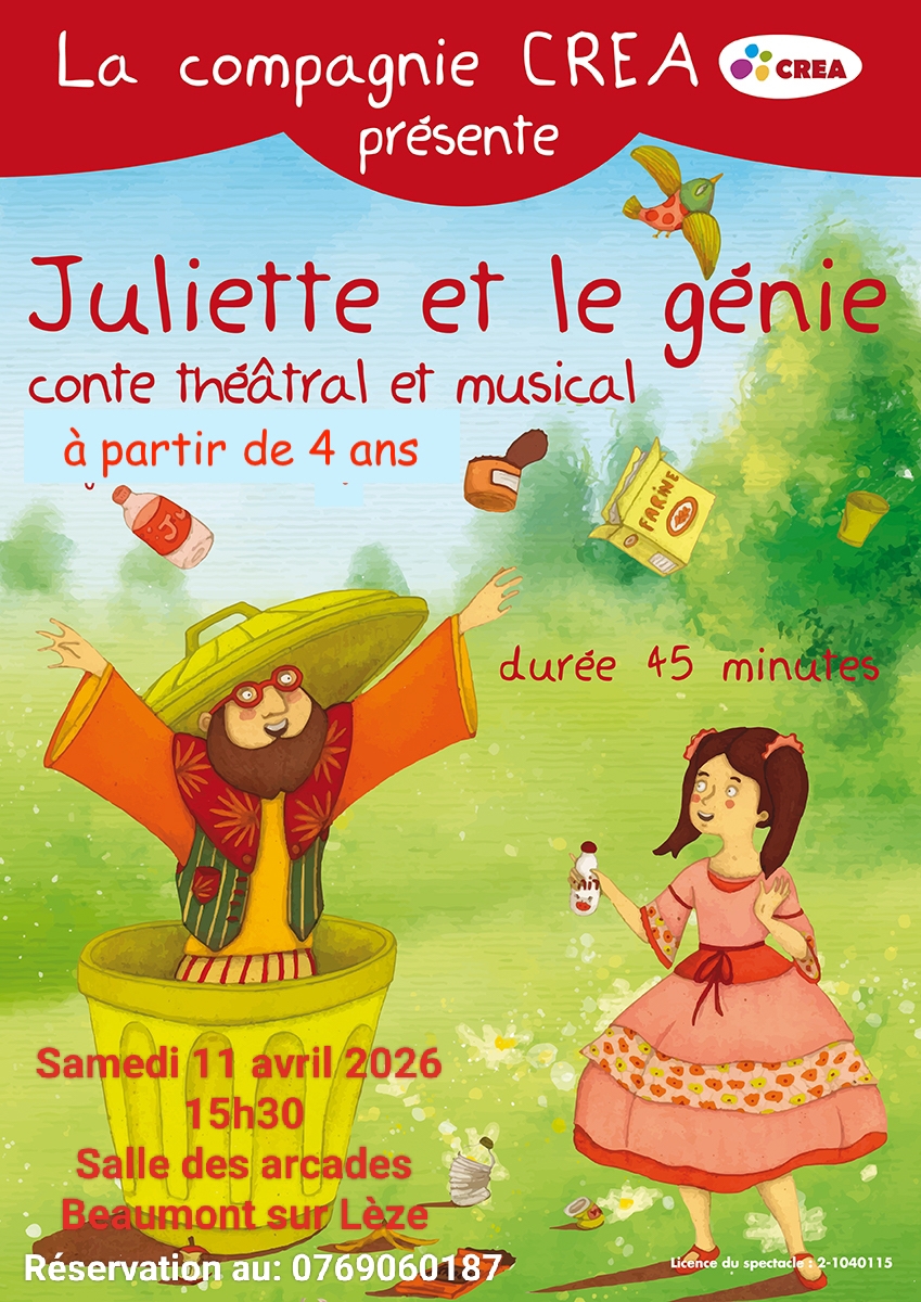 C’est l’histoire de Juliette, petite fille de 8 ans et de sa rencontre avec un drôle de personnage, le génie des poubelles. Ce génie est allergique au gaspillage et à la pollution de la planète.